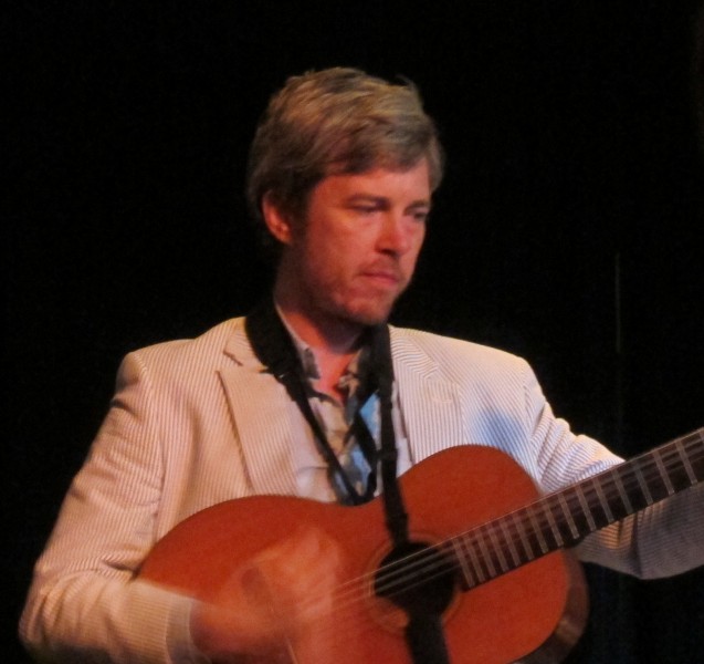 Bill Callahan (of Smog-fame) came to Santa Barbara for the first time last Friday (courtesy of Club Mercy) and filled Soho with his deceptively faineant songs and delivery. Callahan took the stage in sartorial splendor (seersucker suit, dress shoes), addressed his audience with steely-/sleepy-eyed gaze, and proceeded to present a no-nonsense set of his finely crafted and delivered songs. It can take an audience a moment or two to smooth its nerves to Callahan’s minimalist mien and properly down-shift to be drawn in, but it didn’t take long for the crowd to wind down to Callahan-speed and get lost in his songs. With only Callahan’s nylon-stringed guitar, deft and subtle percussion (Neal Morgan) and accentuating electric guitar (Matt Kinsey) in support, Callahan’s baritone and songs were given the spotlight. And they did shine and soar (in gliding fashion, rather than the usual jetting).