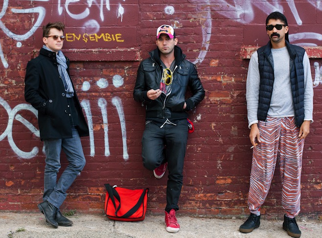 “I don’t care if you’ve been to Tibet.” So rappeth Serengeti on the new song from Sufjan Stevens’ project known as Sisyphus. Sisyphus combines the talents of Son Lux, Stevens and Serengeti (in that order from left above), and will release their self-titled debut album in March. Yesterday the group released the video for the track Alcohol, one of the more disturbing videos we’ve witnessed (seriously, average fans of Stevens are warned to avoid the video and its disturbing montages). Today, however, the group released a new track, the six-minutes of enthrall known as Rhythm Of Devotion. Son Lux leads off with a massive mix, Serengeti raps vigilant (if a bit vigilante), and Stevens steps in at the 2:00 minute mark to add contrast, adorning the track in R&B electro-pop motifs to soften the edges. And then all are combined, and the rock it does roll. On up that hill. We’ve had it on repeat all day. Mesmerizing. We can’t wait for the full album.